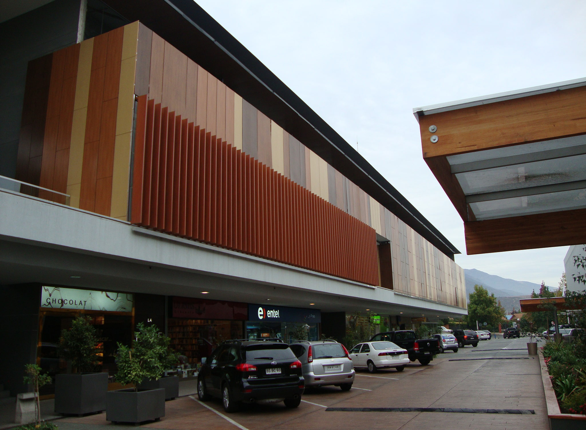 La volumetría fue trabajada a través de planos con distintas materialidades, buscando contrastes, que apoyan la vocación comercial del edificio y de escala con el barrio circundante. Donde la madera tiene un rol integrador, diferenciador y de calidez, caracterizando la imagen que proyecta al vecindario.