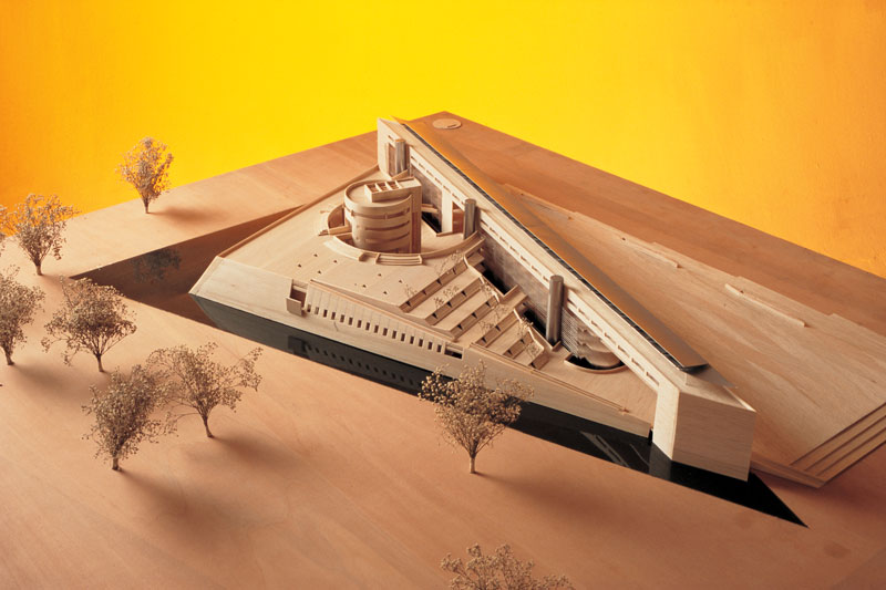 El proyecto es la analogía a un dique o meseta mirador que contiene, protege y proyecta su diálogo con su entorno urbano y natural, tanto a micro como a macro escala. Su forma triangular, se plantea como ordenador y articulador de la trama urbana y de lo orgánico del parque, a través de su espolón agudo que enfrenta el parque longitudinalmente.