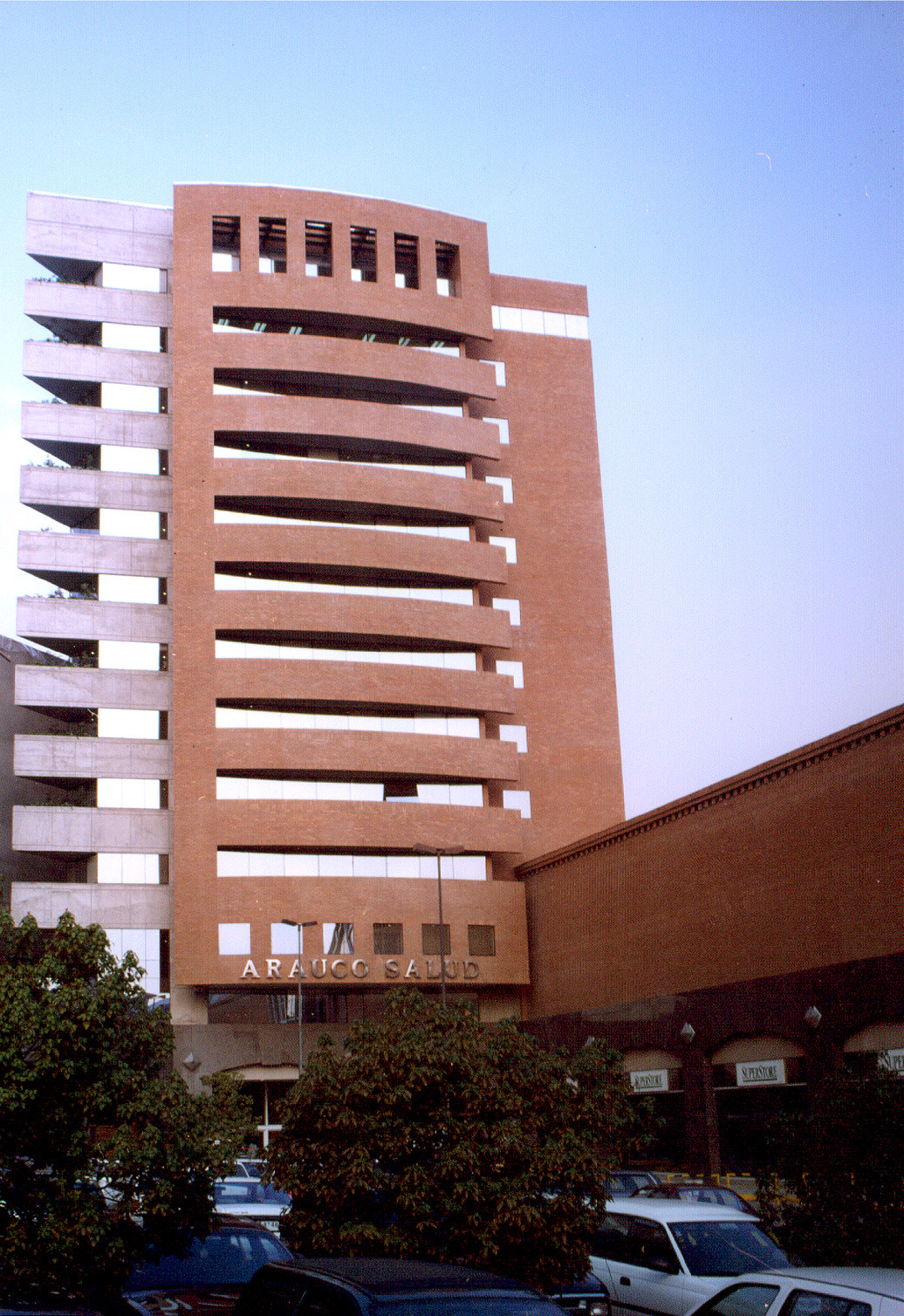 El desafío se centró en aprovechar la condición de “Rincón” del terreno, para generar un volumen vertical que actuara de bisagra reconocible de la edificación baja existente. El edificio actúa entonces como un verdadero mástil del complejo, consolidando la imagen institucional de la companía en la silueta urbana. Se ha rescatado la materialidad del edificio fundacional Mall 1, enchape de ladrillo en combinación con hormigón a la vista como un intento de volver a ordenar una lectura unitaria que el conjunto tuvo en su origen. Las fachadas son disímiles y varían según cual sea su orientación y uso, a modo de optimizar energías pasivas físico ambientales. Al nor-poniente un muro pantalla calado se desprende de la fachada fenestrada para protegerla del sol. Al poniente un rítmico sistema de ventanas sesgadas se abren al sur, para bañar los interiores con luz homogénea apropiada para el trabajo. Al oriente un gran ventanal curvo de cristal reflectivo de varios pisos de altura, jerarquiza y acusa los halles de ascensores, permitiendo una formidable vista a la cordillera. El basamento del edificio está conformado por una sucesión de pórticos, los mismos que se retoman del edificio contiguo, los que definen el atrio de acceso y amarran una lectura única a nivel peatonal.
